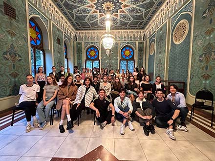 met the soloists of the ballet troupe and the students of the Vakhtang Chabukiani Tbilisi Ballet Art School in the blue hall of the Tbilisi Opera and Ballet Theater.